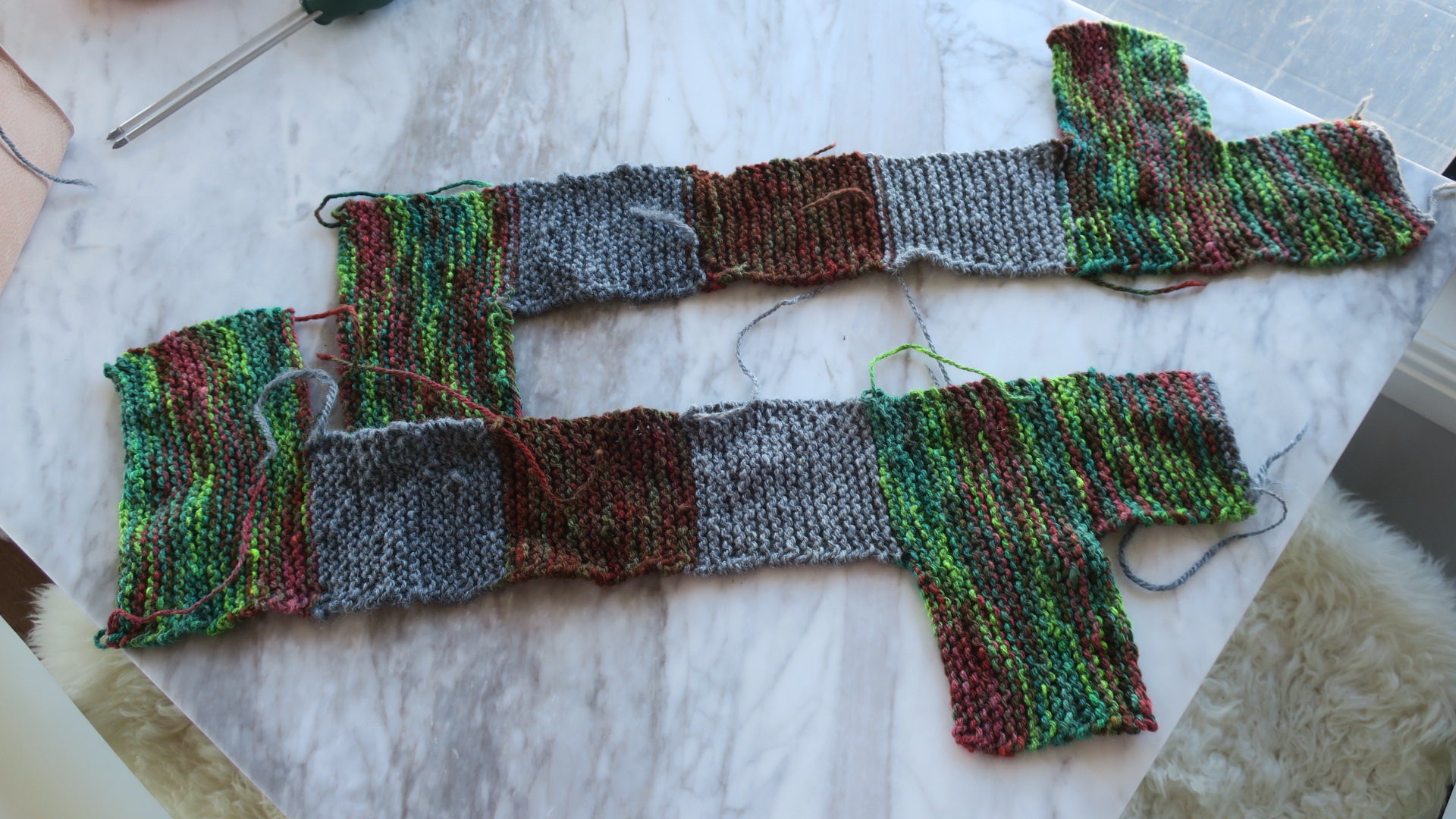 I have finished the knitting on a pair of felted elf slippers! Pattern is by Drops.