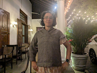 When I'm at home I wear comfy clothes. Trackies or Pyjama pants, ugg boots and a comfy jumper. No bra, no glasses and no rings. I am very particular about my comfy jumper. It has to be loose and warm and just right. For the last few years it has been the Treetops jumper. I don't know when this became my go-to jumper, but it's looking rather tired. When I saw Blanko - the day it was released - I queued it immediately. Something about the shape of it just looked so snuggly and comfortable. I bought yarn when we were in Adelaide, and decided it was the perfect pattern to knit on our recent Sri Lanka trip.